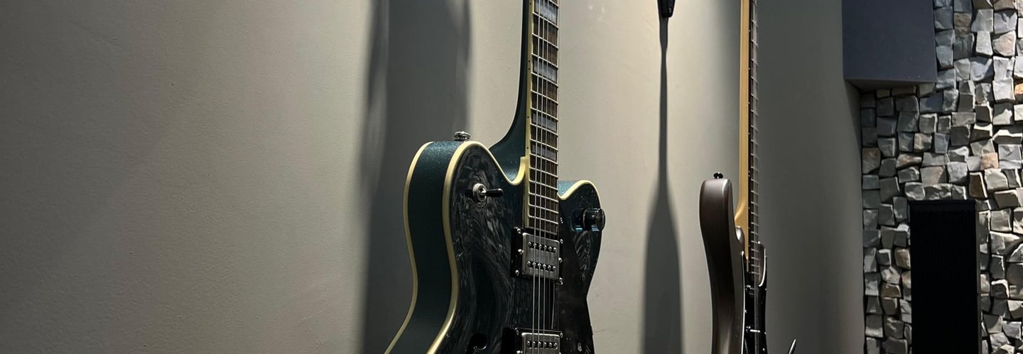 Oferecemos guitarra, violão e amplificadores para atender suas necessidades musicais.