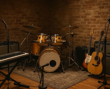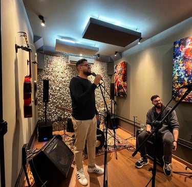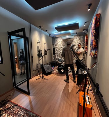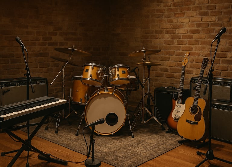 Espaço ideal para ensaiar suas músicas com qualidade e conforto para músicos.